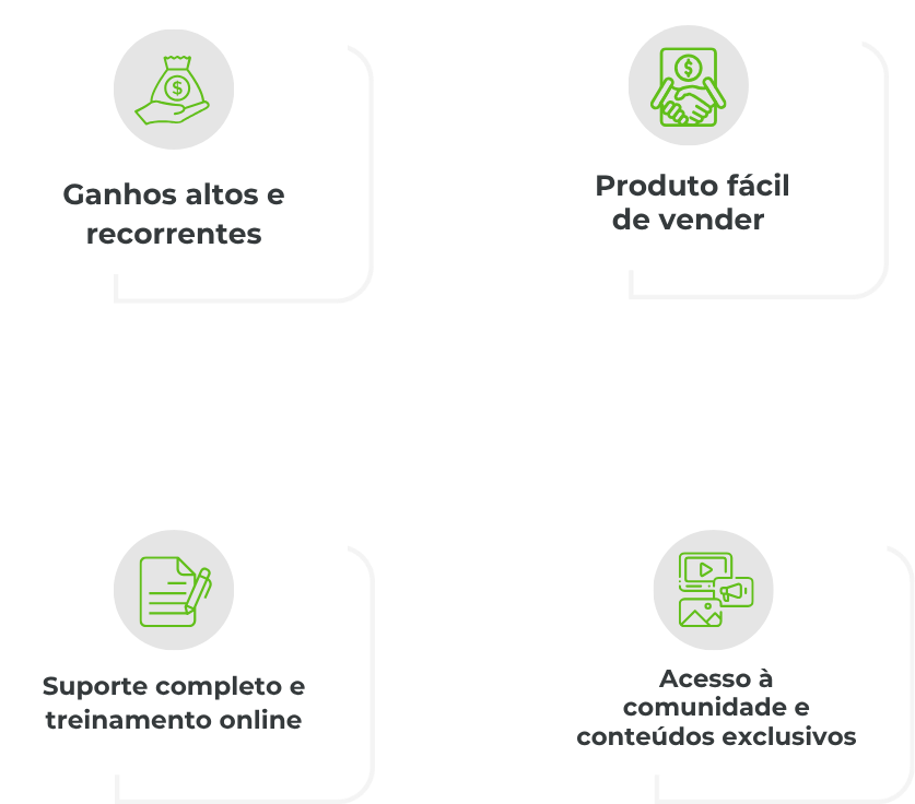 Acompanhamento comercial, suporte de marketing e treinamento contínuo.
